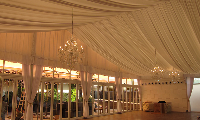 我司嚴(yán)格執(zhí)行ISO9001的質(zhì)量管理體系,確保不良產(chǎn)品的最小化及客戶滿意度的最大化。我們的的主要產(chǎn)品包括可移動(dòng)的模塊化鋁合金支架篷房,有不同風(fēng)格的篷房及裝飾可供選擇,篷房跨度從3米到60米。此外,還包括錐頂篷房和吊頂篷房,以及篷房配件,如照明燈具、地板、空調(diào)、桌椅及其它用于篷房?jī)?nèi)部的家具。篷房可廣泛應(yīng)用于大小型活動(dòng)、婚慶、展會(huì)、體育、酒店、航空和工業(yè)等其它領(lǐng)域。篷房框架結(jié)構(gòu)為高強(qiáng)度鋁合金6061/T6型材,篷布為防水、阻燃的雙面PVC涂層聚酯纖維布,主體結(jié)構(gòu)風(fēng)載荷不少于100Km/h。