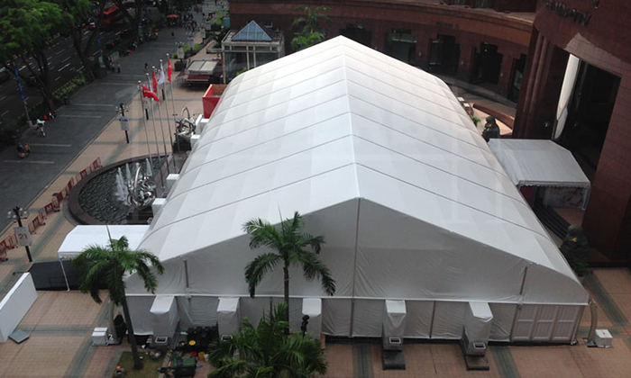 我司嚴格執行ISO9001的質量管理體系,確保不良產品的最小化及客戶滿意度的最大化。我們的的主要產品包括可移動的模塊化鋁合金支架篷房,有不同風格的篷房及裝飾可供選擇,篷房跨度從3米到60米。此外,還包括錐頂篷房和吊頂篷房,以及篷房配件,如照明燈具、地板、空調、桌椅及其它用于篷房內部的家具。篷房可廣泛應用于大小型活動、婚慶、展會、體育、酒店、航空和工業等其它領域。篷房框架結構為高強度鋁合金6061/T6型材,篷布為防水、阻燃的雙面PVC涂層聚酯纖維布,主體結構風載荷不少于100Km/h。