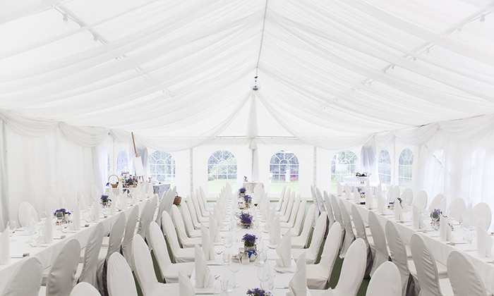 組合型的大型戶外婚禮篷房方案得到了客戶的贊賞和認同,婚禮當天,婚禮井然有序的進行,將婚禮推向了完美的結局。