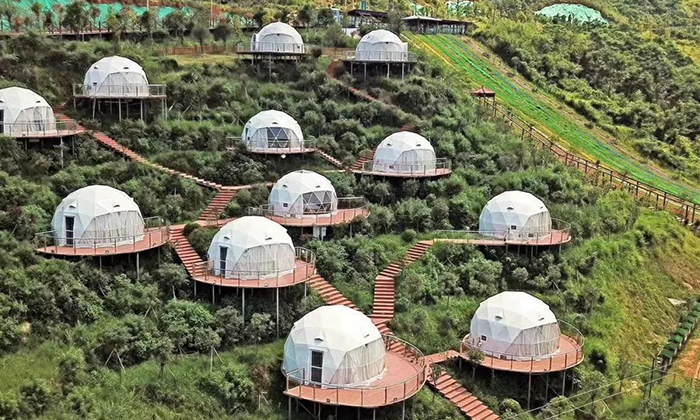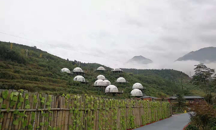 球形星空酒店帳篷一直受到游客的喜愛(ài),這一次武功山的營(yíng)地也是搭建球形星空酒店帳篷。在這里綠油油的風(fēng)景中,最合適搭建酒店帳篷。遠(yuǎn)遠(yuǎn)看去12頂白色球形星空帳篷在綠景也能成為一道亮麗的風(fēng)景。