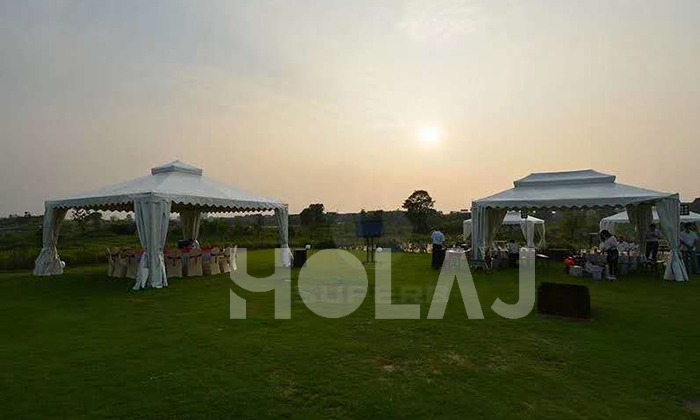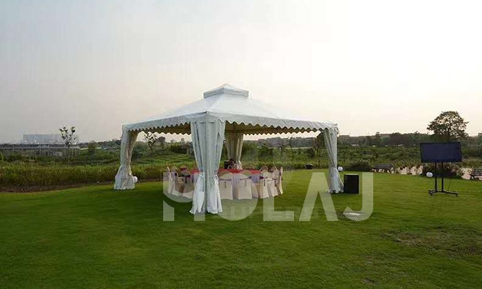 我司嚴格執行ISO9001的質量管理體系,確保不良產品的最小化及客戶滿意度的最大化。我們的的主要產品包括可移動的模塊化鋁合金支架篷房,有不同風格的篷房及裝飾可供選擇,篷房跨度從3米到60米。此外,還包括錐頂篷房和吊頂篷房,以及篷房配件,如照明燈具、地板、空調、桌椅及其它用于篷房內部的家具。篷房可廣泛應用于大小型活動、婚慶、展會、體育、酒店、航空和工業等其它領域。篷房框架結構為高強度鋁合金6061/T6型材,篷布為防水、阻燃的雙面PVC涂層聚酯纖維布,主體結構風載荷不少于100Km/h。