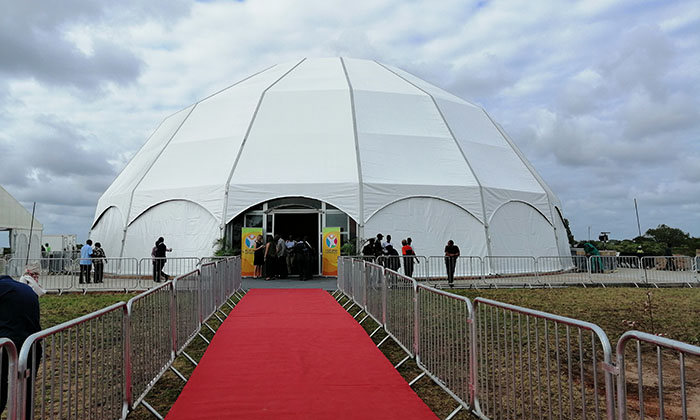 速派篷房是目前國內比較大型的篷房生產廠家,我們的篷房夸度可按要求規模量身定制。大型多功能篷房,可應用體育賽事、娛樂場所、臨時醫療、臨時辦公等各種各樣的場合,而且搭建方便,可回收再利用,是既環保又經濟的優秀產品。所謂篷房,顧名思義篷房在規模上可以媲美固定建筑。篷房的面積可以小到幾平米,大到幾萬平米,理論上甚至可以無限延展。篷房內部沒有支柱,空間100%利用。