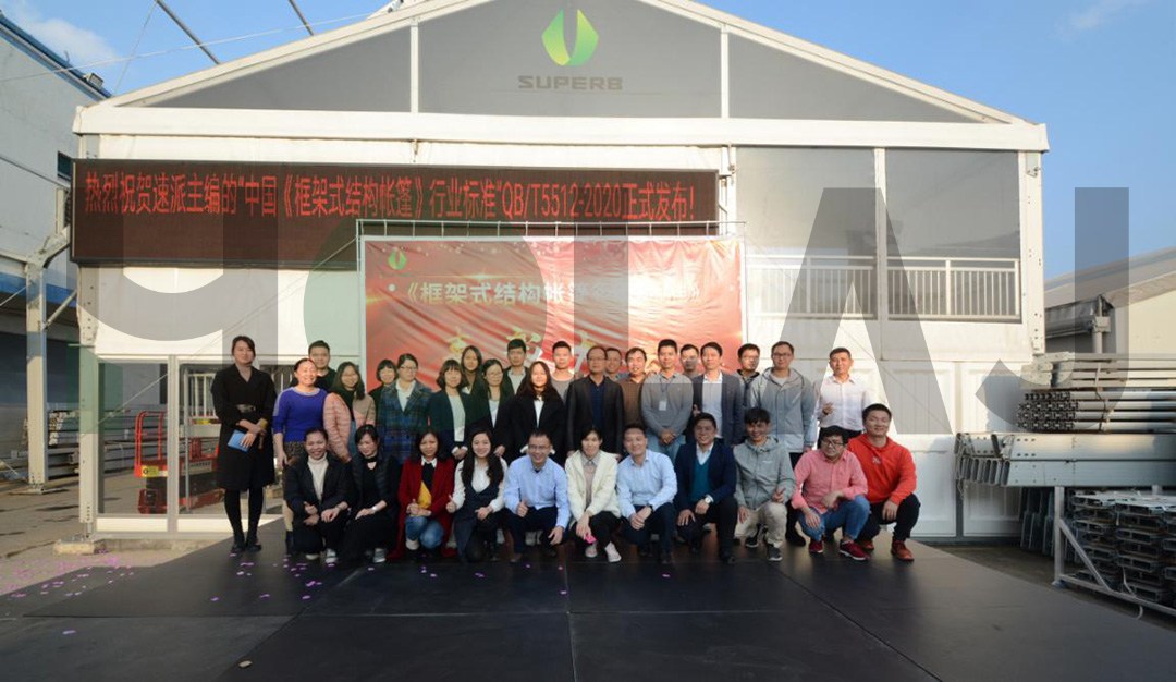 速派憑借在篷房領(lǐng)域卓越的研發(fā)創(chuàng)新實力,組織公司專家參加框架式結(jié)構(gòu)篷房的標(biāo)準(zhǔn)編寫工作,并最終完成《框架式結(jié)構(gòu)帳篷標(biāo)準(zhǔn)》的編寫、審批。