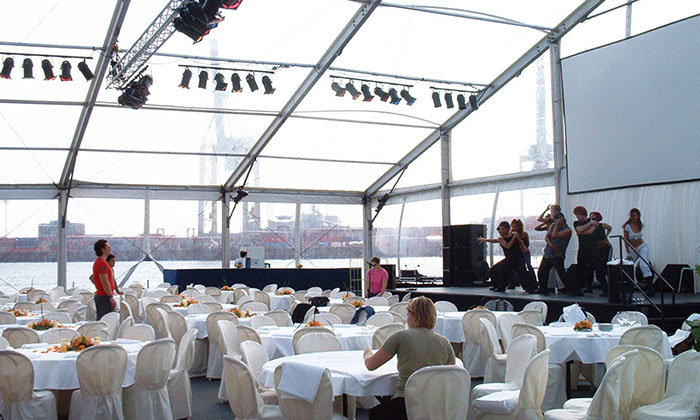 我司嚴格執行ISO9001的質量管理體系,確保不良產品的最小化及客戶滿意度的最大化。我們的的主要產品包括可移動的模塊化鋁合金支架篷房,有不同風格的篷房及裝飾可供選擇,篷房跨度從3米到60米。此外,還包括錐頂篷房和吊頂篷房,以及篷房配件,如照明燈具、地板、空調、桌椅及其它用于篷房內部的家具。篷房可廣泛應用于大小型活動、婚慶、展會、體育、酒店、航空和工業等其它領域。篷房框架結構為高強度鋁合金6061/T6型材,篷布為防水、阻燃的雙面PVC涂層聚酯纖維布,主體結構風載荷不少于100Km/h。