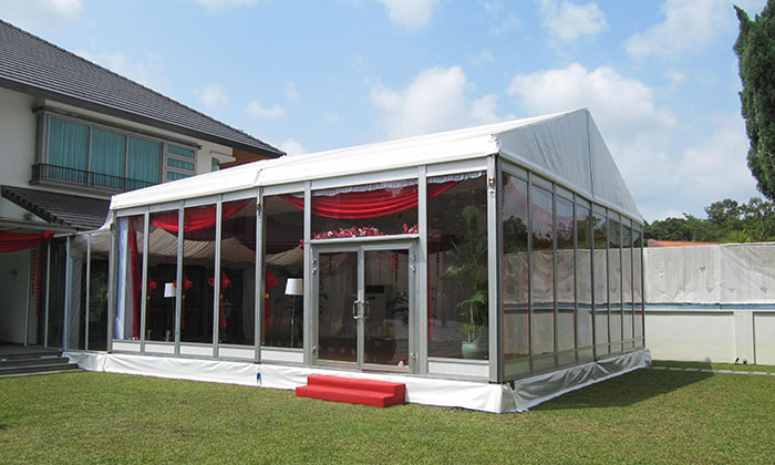 我司嚴格執(zhí)行ISO9001的質(zhì)量管理體系,確保不良產(chǎn)品的最小化及客戶滿意度的最大化。我們的的主要產(chǎn)品包括可移動的模塊化鋁合金支架篷房,有不同風格的篷房及裝飾可供選擇,篷房跨度從3米到60米。此外,還包括錐頂篷房和吊頂篷房,以及篷房配件,如照明燈具、地板、空調(diào)、桌椅及其它用于篷房內(nèi)部的家具。篷房可廣泛應用于大小型活動、婚慶、展會、體育、酒店、航空和工業(yè)等其它領域。篷房框架結(jié)構(gòu)為高強度鋁合金6061/T6型材,篷布為防水、阻燃的雙面PVC涂層聚酯纖維布,主體結(jié)構(gòu)風載荷不少于100Km/h。