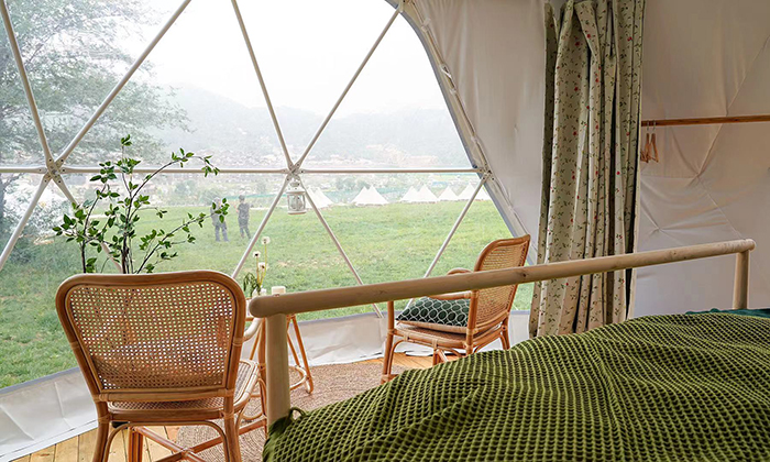 作為最新款酒店式帳篷,不管是材質對比PCV布的要耐用,外觀也更有特色,入住體驗好,適合打造成網紅款來運營,可以為景區吸引大量人氣。