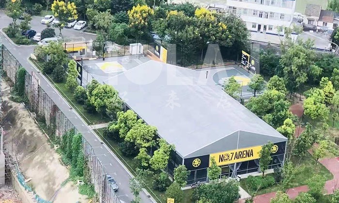 籃球場篷房的搭建需要考慮到多個要素,包括篷房面積、高度、類型、結構框架、篷布類型等方面。在篷房結構材料的選擇中也需要考慮到其結構的穩定性,同時需要注意篷房的防水性能。
